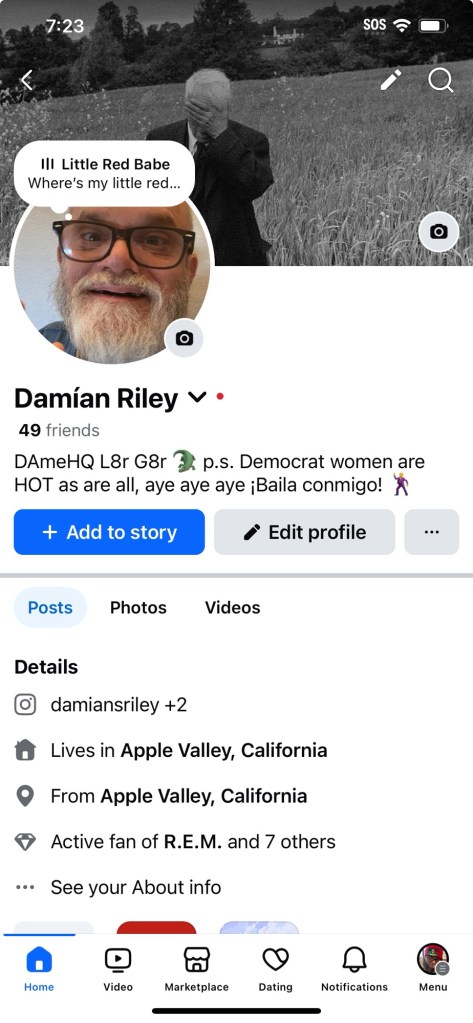 Posted on June 23, 2025 by Damien RileyPeople are still on FB and I haven’t been banned again, yet. facebook.com/damiansriley Share this: Share on Reddit (Opens in new window) Reddit Share on Tumblr Share on WhatsApp (Opens in new window) WhatsApp Share on Bluesky (Opens in new window) Bluesky Print (Opens in new window) Print Email a link to a friend (Opens in new window) Email Share on Mastodon (Opens in new window) Mastodon Like Loading... Related