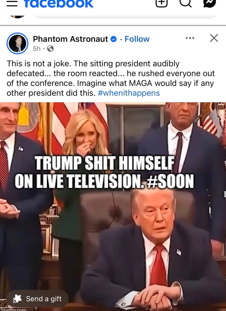 Posted on February 4, 2026 by Damien RileyTrump Shat on National Live Television, the room reacted https://www.hindustantimes.com/world-news/us-news/trump-pooped-his-pants-climate-activists-big-claim-after-oval-event-ends-abruptly-101769805884560-amp.html Share this: Share on Reddit (Opens in new window) Reddit Share on Tumblr Share on WhatsApp (Opens in new window) WhatsApp Share on Bluesky (Opens in new window) Bluesky Print (Opens in new window) Print Email a link to a friend (Opens in new window) Email Share on Mastodon (Opens in new window) Mastodon Like Loading... Related